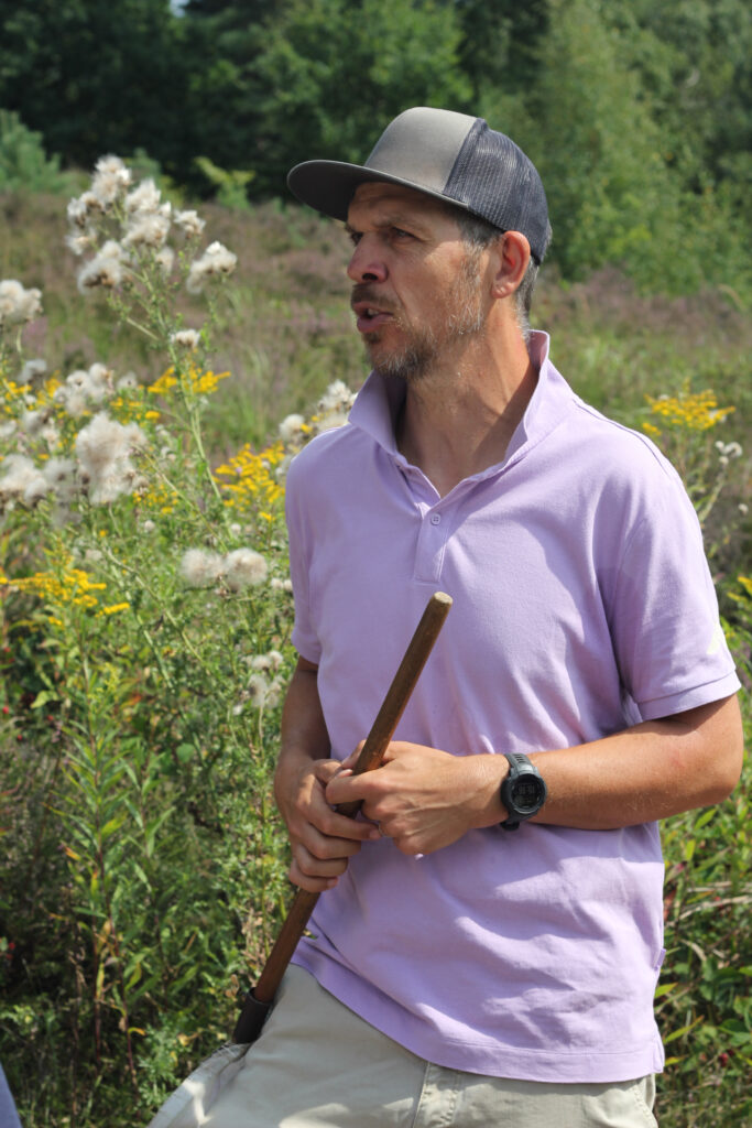 Zusammen mit dem NABU Kreisverband Gütersloh, der zur Insekten-Wanderung im Spätsommer 2025 einlud, führte Christian Venne von der Bio-Station Paderborn-Senne Insekten-Fans und Naturschutzinteressierte durch einen besonderen Landschaftsraum am Rand des Teutoburger Waldes bei Oerlinghausen, die Wistinghauser Senne.