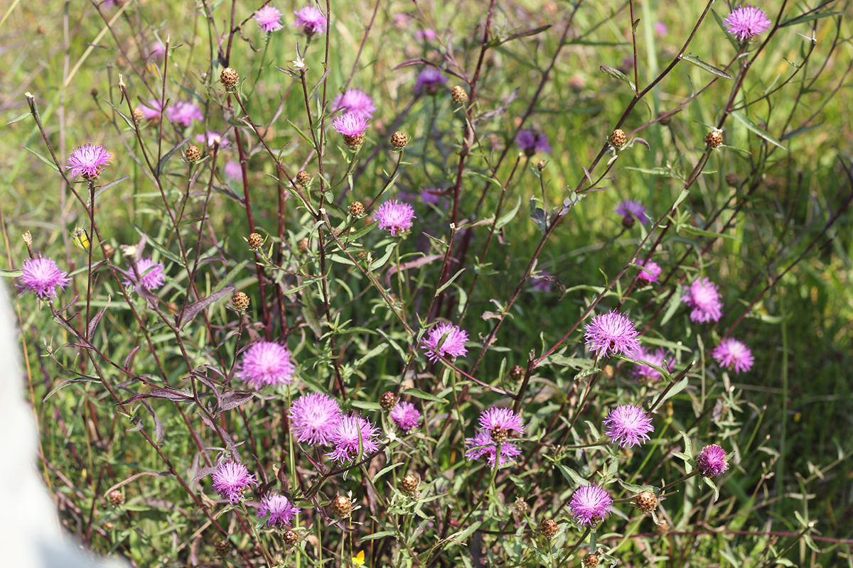 Auch Korbblütler stellen eine wichtige Gruppe für viele Insektenarten dar. Allein bei den Wildbienenarten gibt es 15 bis 20 Arten in Ostwestfalen, die nur an Korbblütlern Pollen sammeln. Wildbienen stehen also auch auf Kamille, Wegwarte und viele andere Blühpflanzen, sogar invasive Arten, wie zum Beispiel die Breitblättrige Platterbese mit ihren pinkfarbenen Blüten werden gerne besucht. Für die hat besonders die blau-schwarze Holzbiene eine Schwäche, erzählt uns Venne.