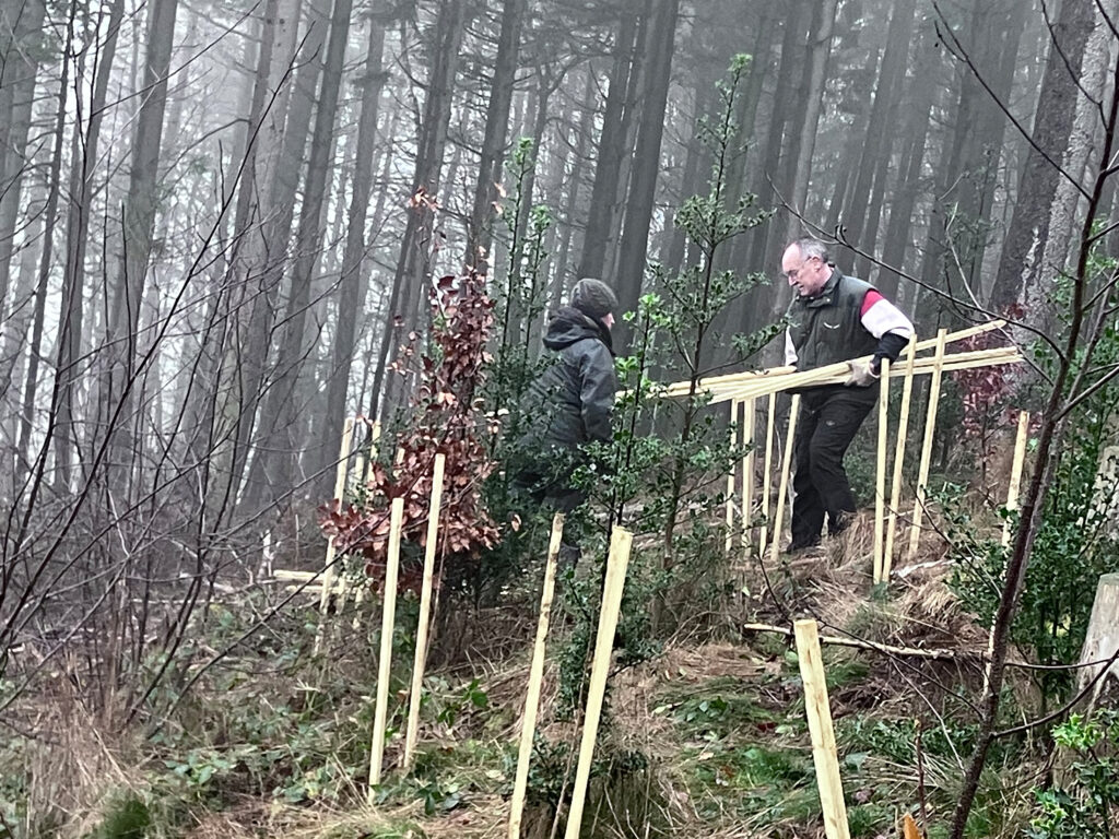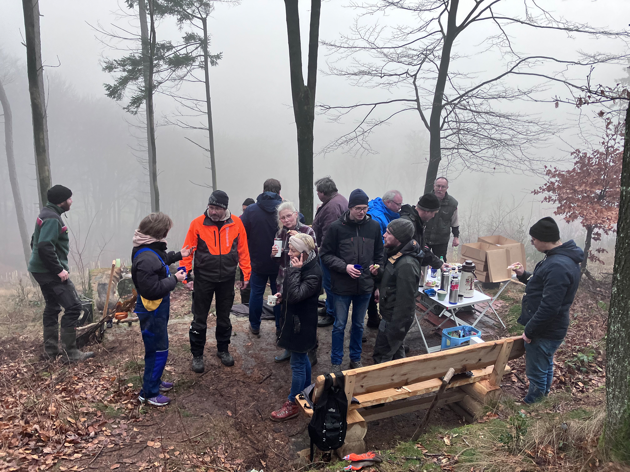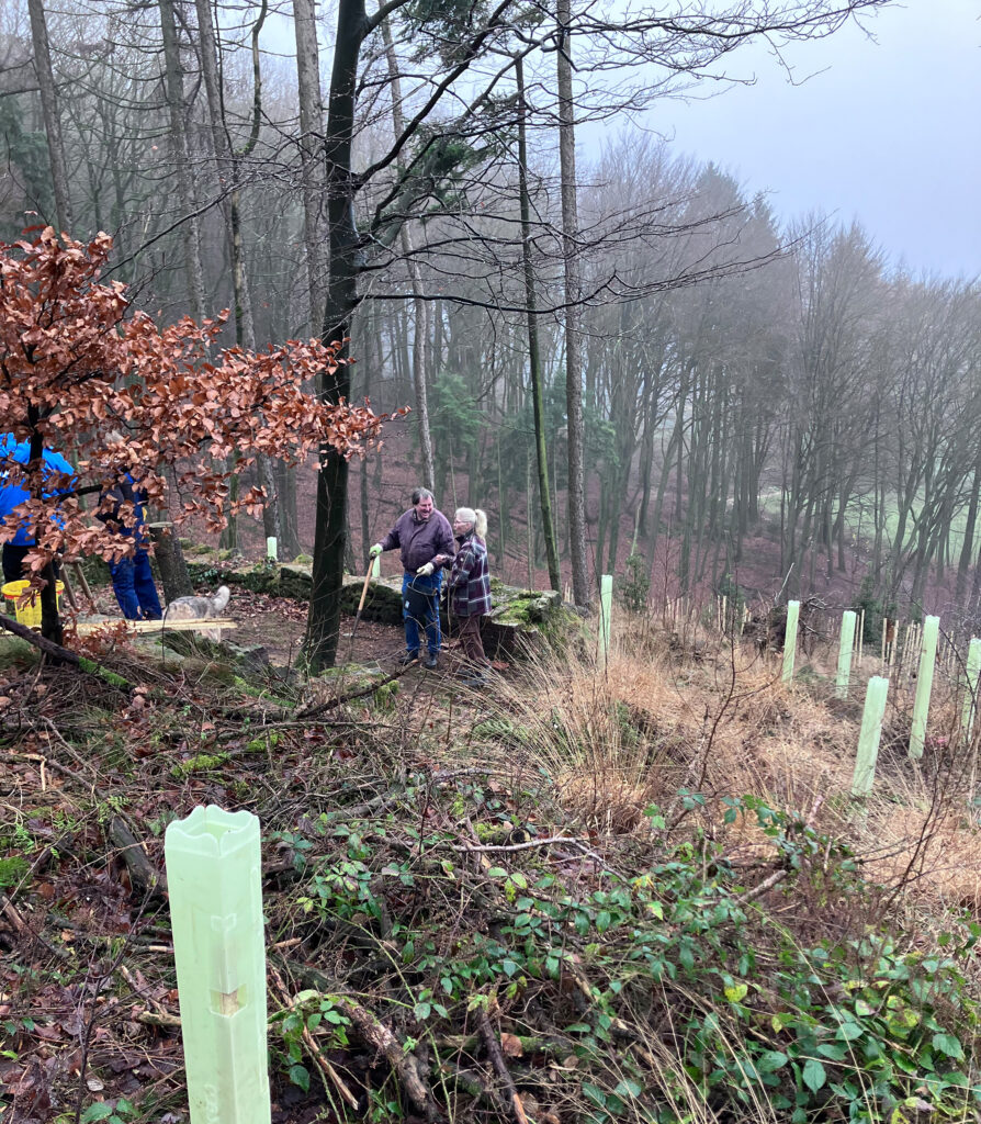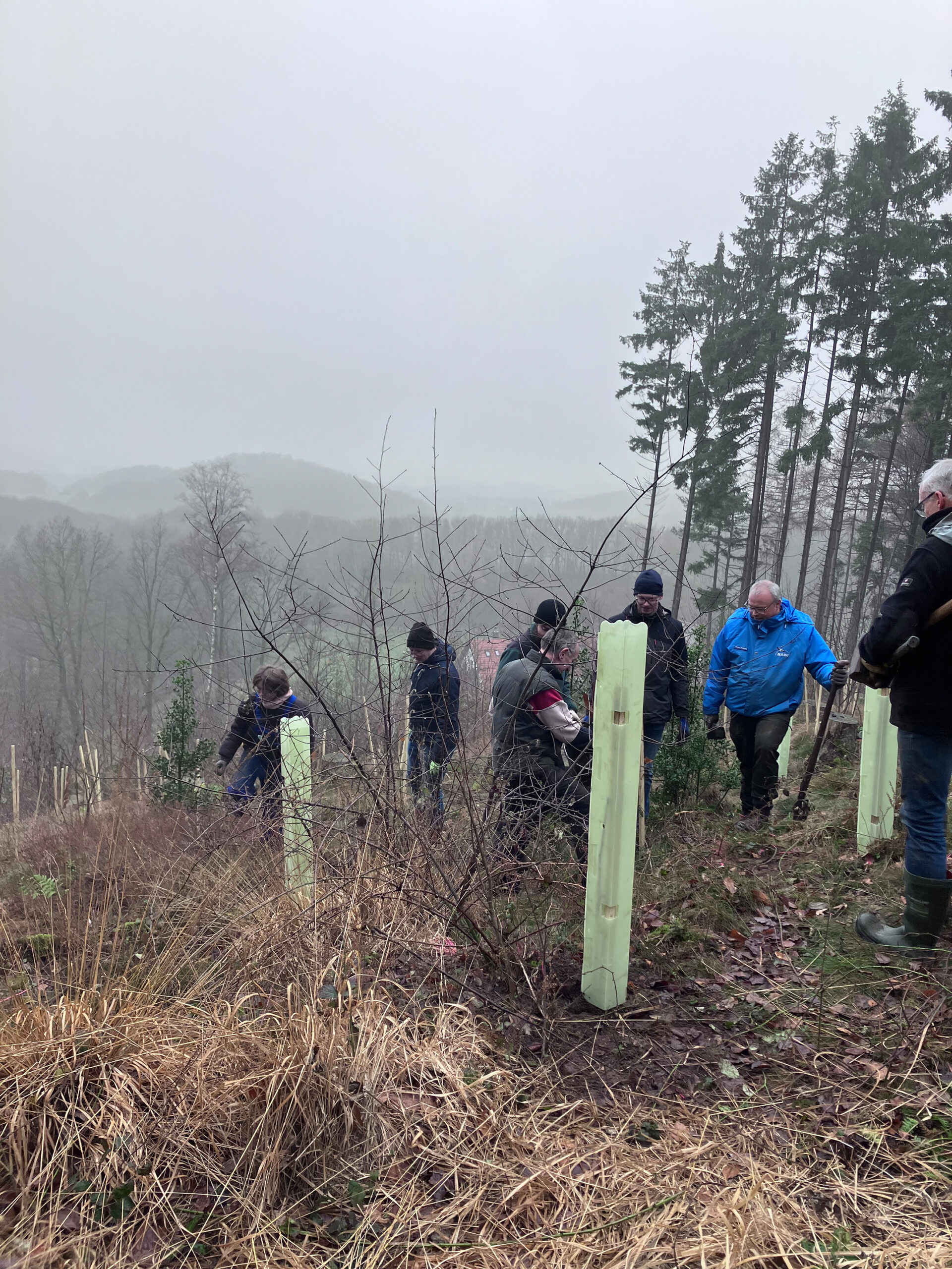 Am 13. Dezember wurden in einer Gemeinschaftsaktion vom Silberhochzeitspaar, Freunden, Familie, Nachbarn und ein paar Aktiven vom NABU knapp 125 Bäume gepflanzt. Mit dabei waren auch der Waldbesitzer und der Förster.
