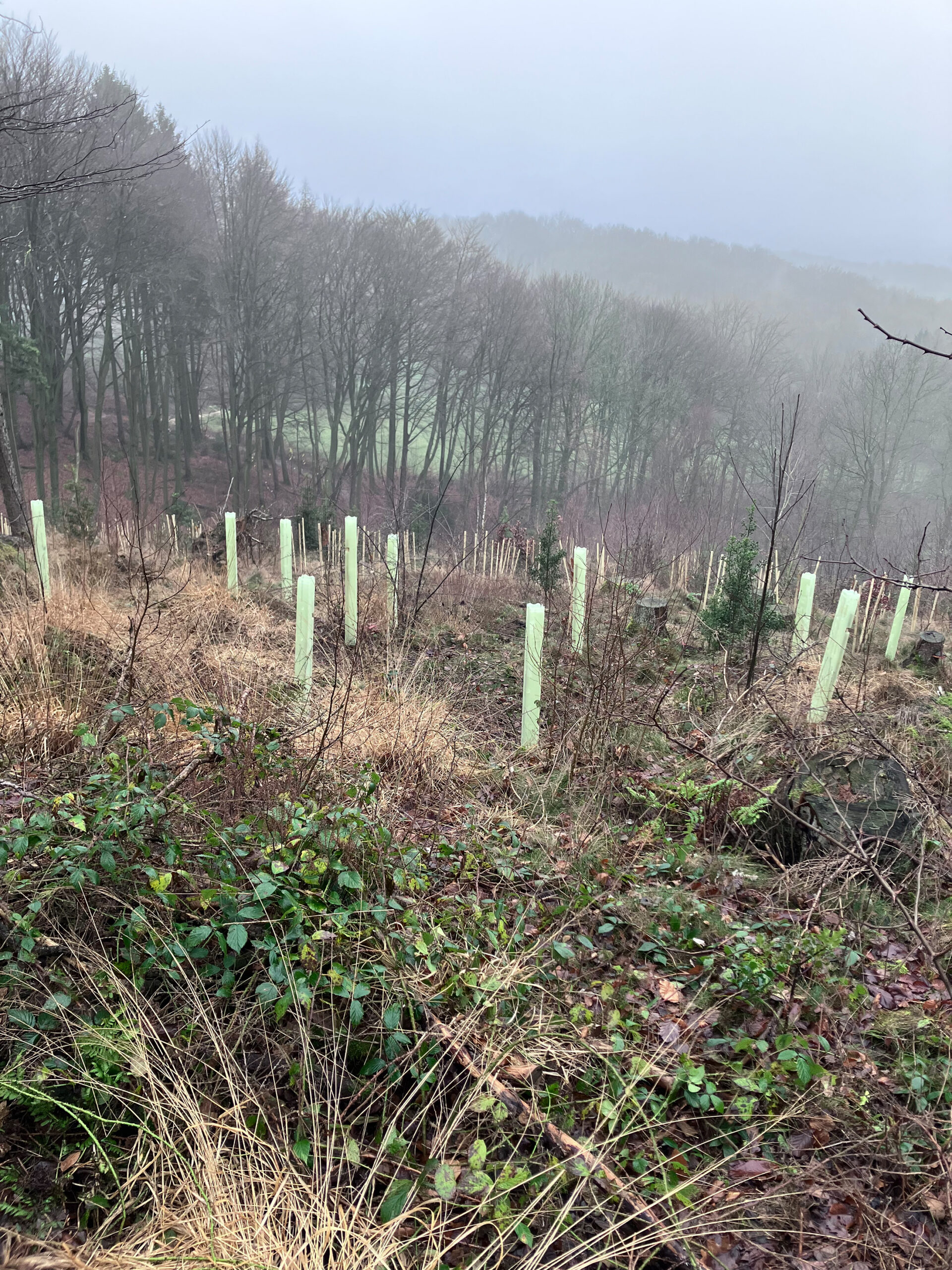 Es wurden in Absprache mit dem Förster nur heimische und trockenheitsresistente Baumarten gepflanzt, die zu dem vorhandenen Baumbestand passen.
