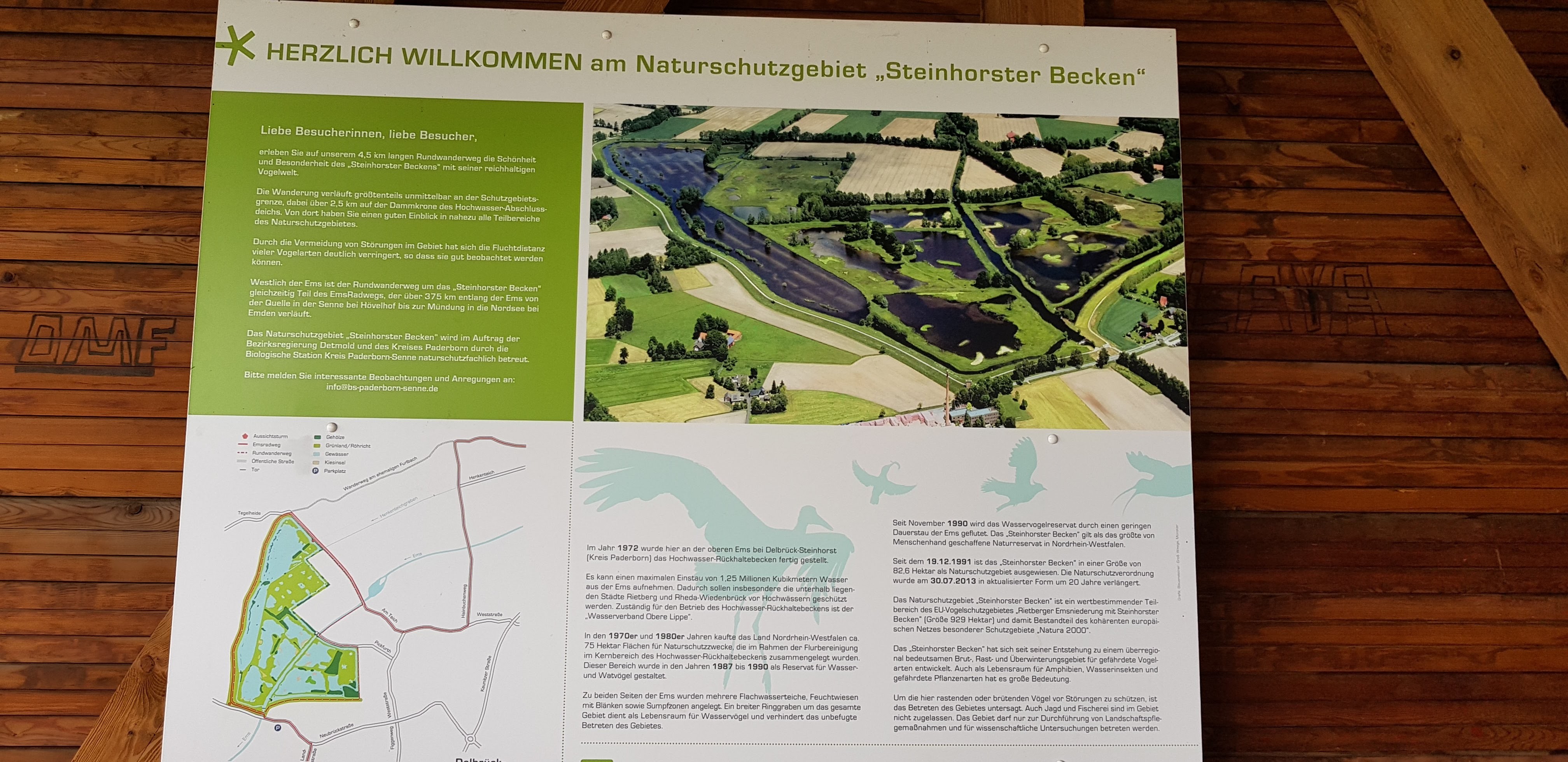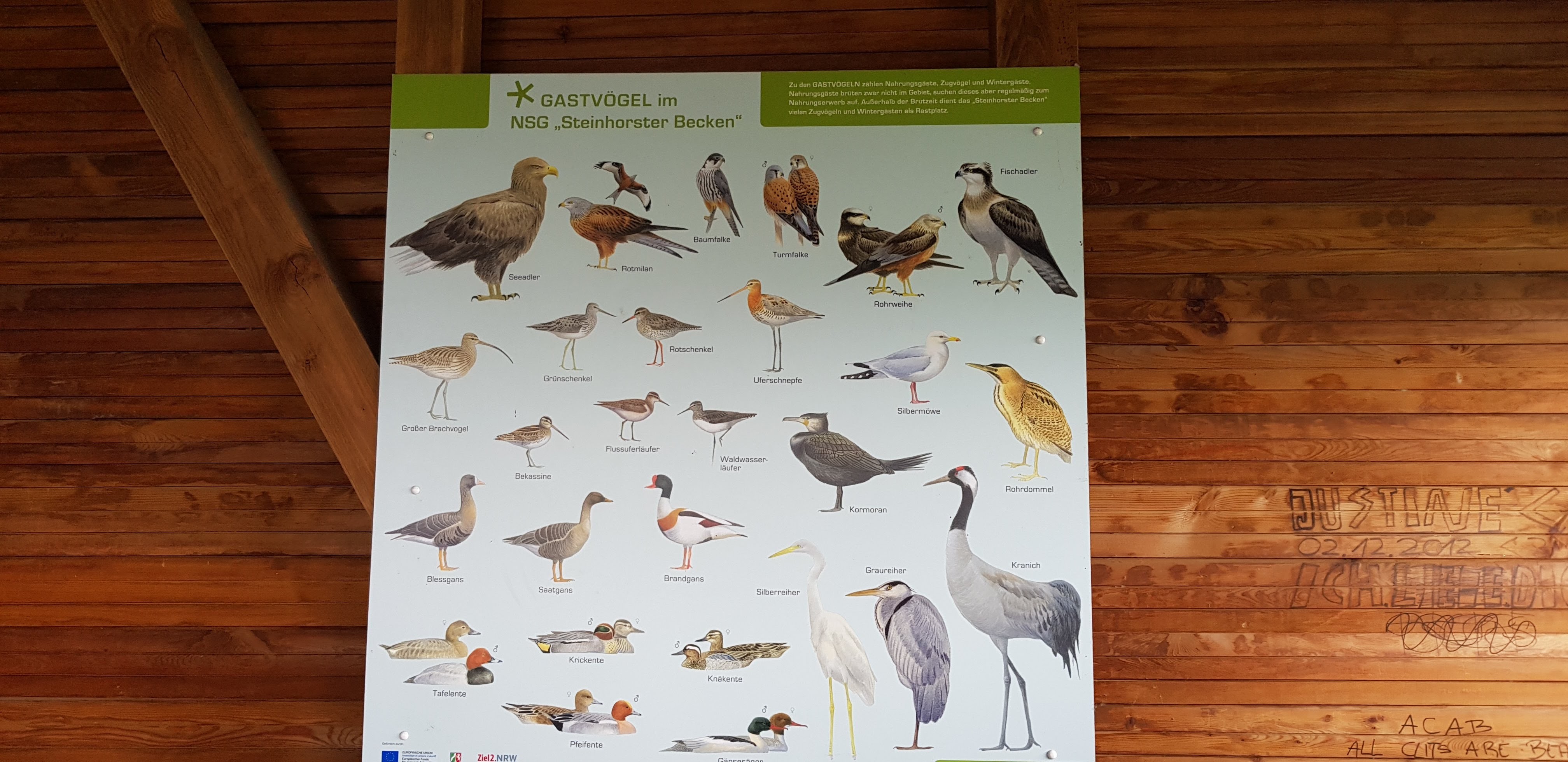 Ungewöhnliche Gäste verschiedenster Wasservögel locken zahlreiche Besucher zum Steinhorster Becken. Am 14. April bot auch der NABU Kreisverband Gütersloh eine Exkursion an, um von Rundwanderweg Flora und Fauna zu bestaunen. Fast 30 Naturfreunde waren dabei, um an der Führung mit  Dr. Lackmann von der Biologischen Station Kreis Paderborn teilzunehmen.