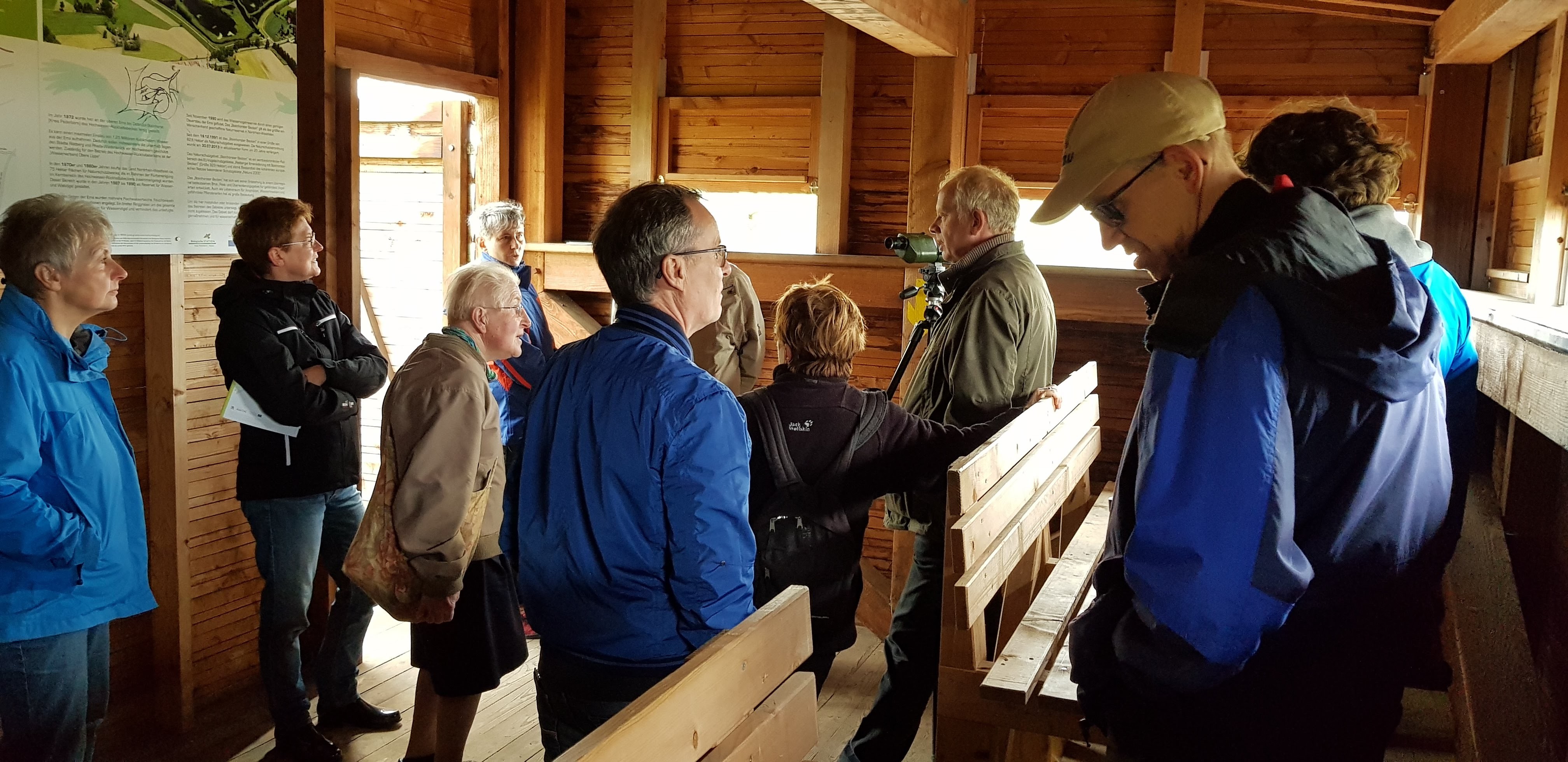 Nach etwa zwei Stunden erreichte die Gruppe die zweite Aussichtsplattform an der nordöstlichen Kante des Naturschutzgebietes. Hier konnte ein Weißstorchpaar auf einem Horst beobachtet werden.