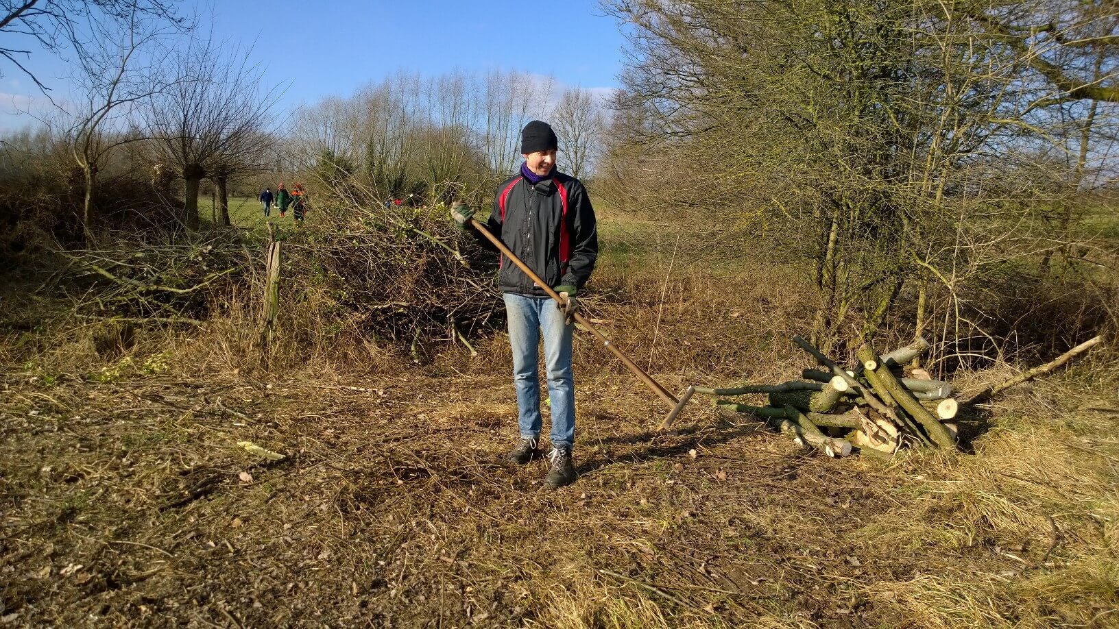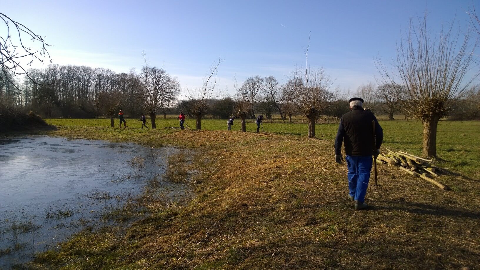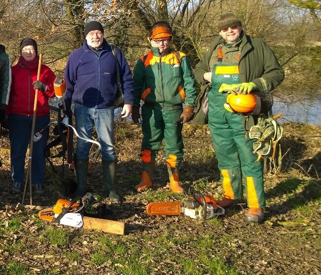 Am Samstag, den 24. Februar 2018 fand bei allerschönstem, aber kaltem Winterwetter die letzte Pflegemaßnahme dieses Zeitraums statt. Dieser Termin war auch im Flyer des NABU-Kreisverbands Gütersloh bekannt gegeben worden. So fanden sich ca. 20 Helfer ein, um Aufräumarbeiten, letzte Schneidemaßnahmen sowie Freischnitte an Gewässern durchzuführen.