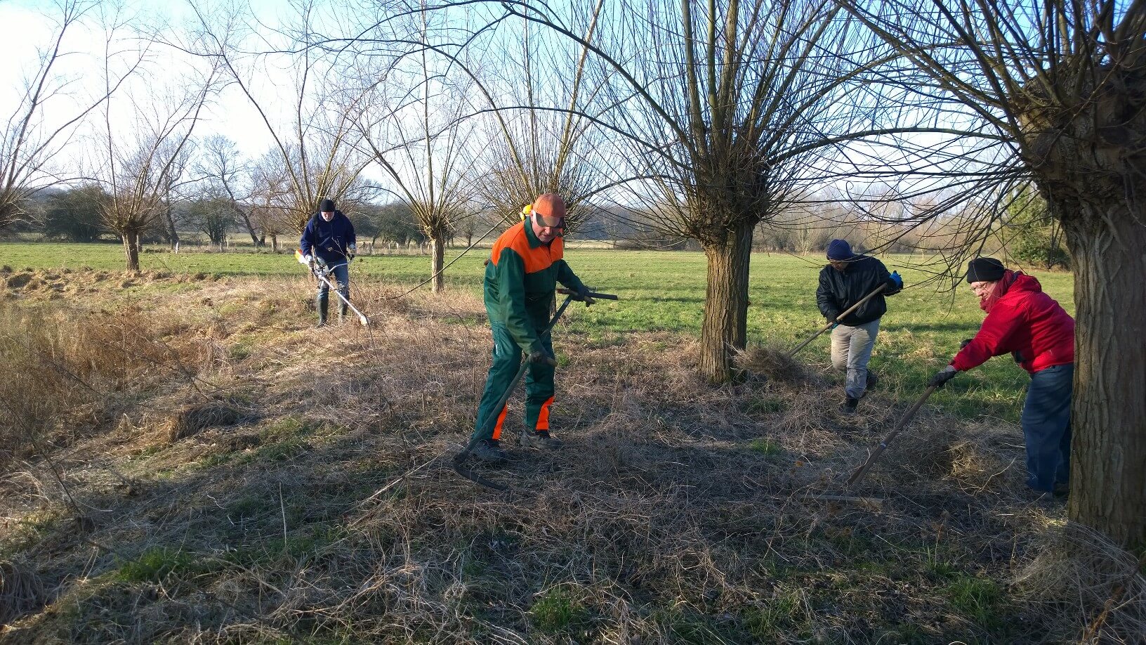 In dieser Zeit wurden 20 Kopfweiden geschneitelt, die z. T. bereits enormes Astwerk entwickelt hatten. Kopfweiden bedürfen eines regelmäßigen Rückschnitts, weil sie sonst auseinanderbrechen. Im Laufe der Jahre entwickeln diese Bäume aber Asthöhlen, die sehr gern von Steinkäuzen, aber auch Meisen und vor allem Fledermäusen angenommen werden.