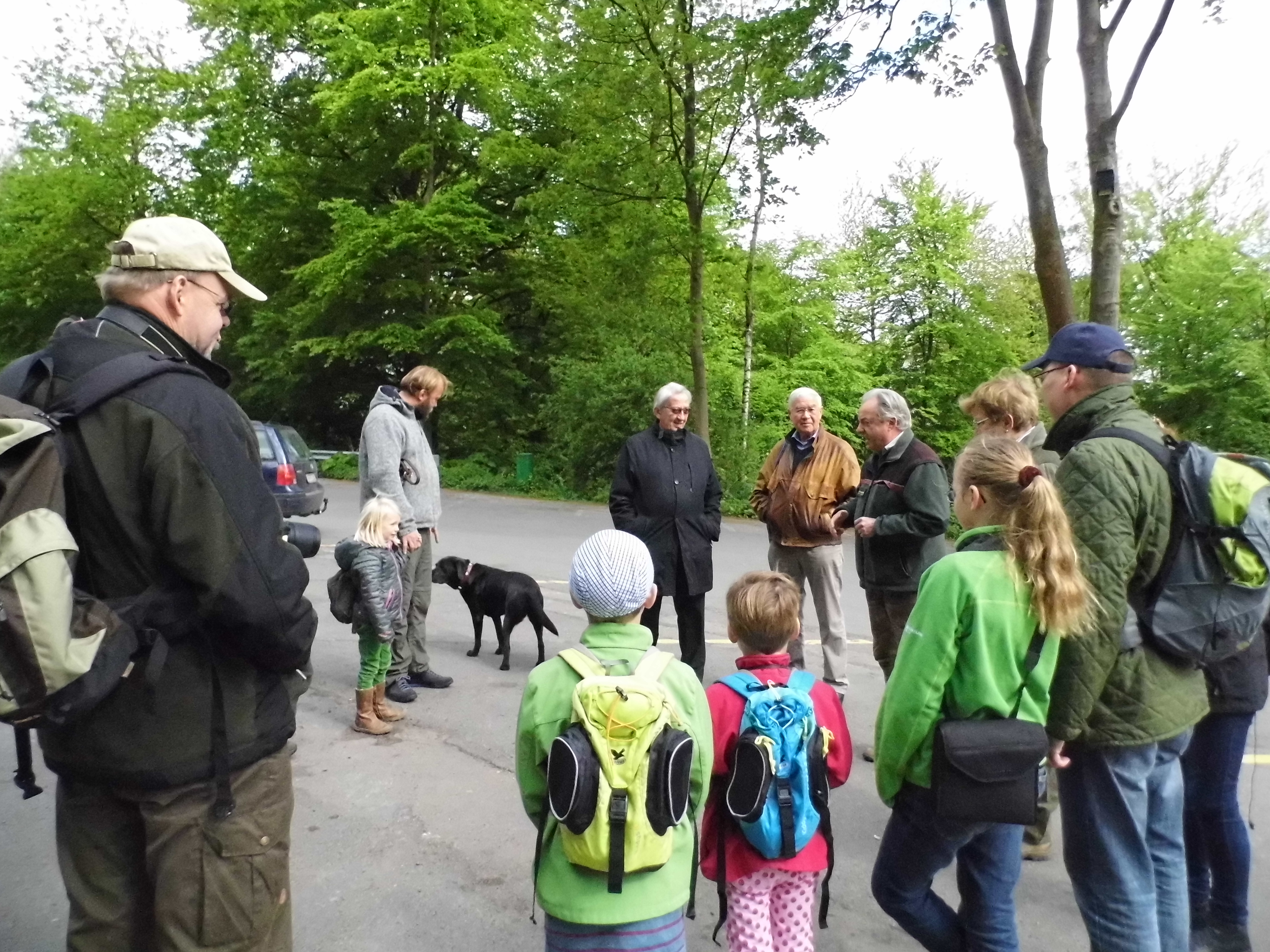Ab hier erläuterte Herr Stöckmann vom Landesbetrieb Forsten die Organisation der Bewirtschaftung der Waldgebiete in Nordrhein-Westfalen im Allgemeinen und im Wiehengebirge im Speziellen. Viele interessante Pflanzen am Wegrand wurden angesprochen, so fanden sich vereinzelt noch Frühjahrsblüher (Weißes und Gelbes Buschwindröschen, Salomonsiegel, Goldnessel, Waldmeister, Aaronstab, etc.). Aber auch Probleme, wie zum Beispiel das unerlaubte Befahren des Waldes durch Mountainbiker wurde diskutiert.