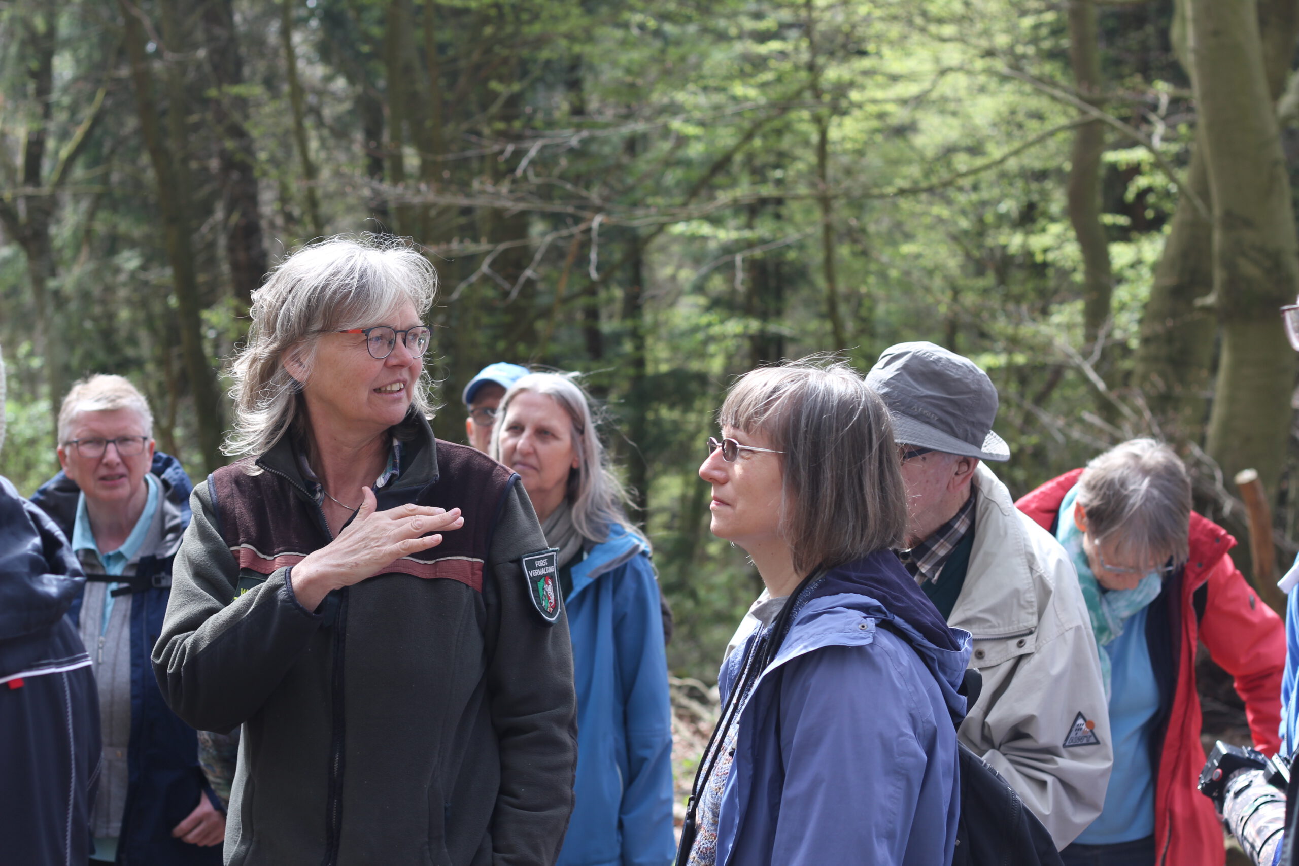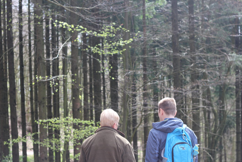 Rund drei Kilometer umfasste unsere Wanderroute durch das Gebiet rund um Borgholzhausen, das geprägt ist von Buchenwäldern und auch Teil des Fauna-Flora-Habitatgebiets Östlicher Teutoburger Wald ist. Im Fokus der Exkursion standen die Fragen, wie ein klimastabiler Wald aussehen kann und wie man dahinkommt. Dabei gab uns Försterin Gabriele Lindemann einen Einblick in die Herausforderungen moderner Waldwirtschaft mit dem zentralen Anliegen: Naturschutz und Nutzung zusammenzudenken – gemeinsam mit den Waldbesitzern.